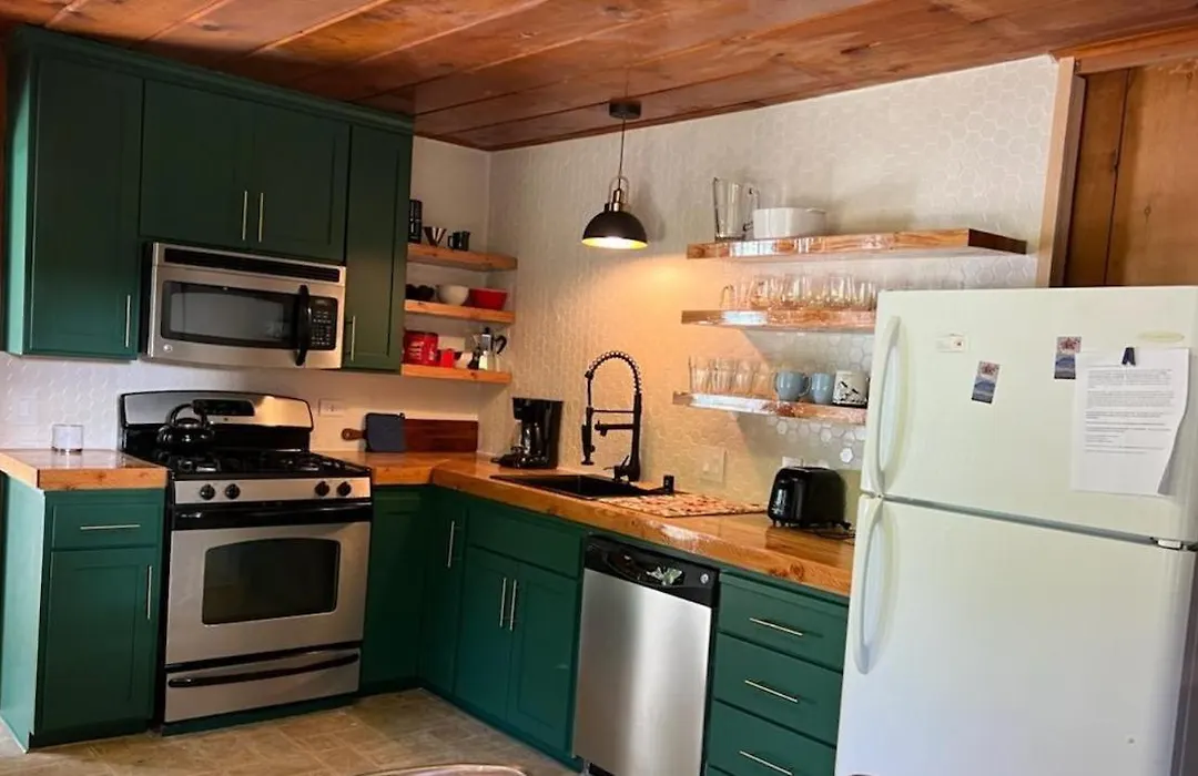 Cabin #8の設備の整った台所で自身の食事を作ることもできます。 そこから500メートル離れたStrawberry innで食事を楽しめます。